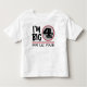 Camiseta bonita e engraçada para o quarto aniversário do bebê: "Sou grande 4, não menos quatro". Esquema de cores vermelho e cinza. Para crianças de quatro anos.