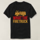 Esta camiseta preta apresenta um gráfico grande, amarelo de um caminhão de bombeiros. Abaixo do caminhão, o texto "O QUE O" está empilhado sobre "FRETRUCK" em uma letra vermelha e em negrito. Esta design humorística toca em uma frase comum.
