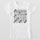 camiseta branca com palavras cruzadas pretas e quadradas brancas desenhadas tendo em mente amantes da quebra-cabeça de palavras cruzadas. As crianças gostam de fazer quebra-cabeça de palavras cruzadas. ideia de presente de excelente.
