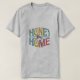 Uma design de camiseta divertida com a frase "Querida, estou em casa" formada por formas coloridas de colmeia. Cada letra de mel é de cor diferente e preenchida com um padrão divertido como bolinhas ou listras.