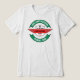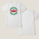Este logotipo de promocional para uma nova coleção de t-shirt de uma marca italiana apresenta uma forma circular com elementos gráficos que se estendem para fora. No topo, em um fundo verde, estão as palavras "NEW T-SHIRT COLLECTION" (NOVA COLEÇÃO DE T-SHIRT) em branco. No centro, dentro a um escudo estilizado, lê-se "MARCA ITALIANA" no topo e "LUXE CASUAL" no meio, ambos a preto. Abaixo, em vermelho, está "DEFINITE 2025." Na parte inferior, sobre um fundo verde, está "PIEDMONT - TURIN" a branco. As cores predominantes são verde, branco, preto e vermelho, lembrando a bandeira italiana e enfatizando a origem da marca. O escudo central dá prestígio e tradição, enquanto as setas verdes sugerem dinamismo. O estilo é moderno e elegante, com personagens simples mas eficazes, e fazer o logotipo reconhecível e memorável. A design comunica claramente a identidade italiana da marca, o lançamento de uma nova coleção de t-shirt e um sentido de luxo casual, com referência específica à região do Piemonte e à cidade de Turim.