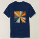 A striking retro-style radial design with sunburst rays emanating from the center in warm and cool tones, giving a vintage feel.