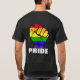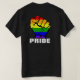 Mostre sua solidariedade para com a comunidade LGBTQ com este design de punho-arco-íris. Na frente esquerda, sobre a área de bolso, há uma pequena versão do punho-arco-íris, com negrito embaixo que diz "PRIDE". Há uma versão maior na parte de trás da camisa.