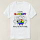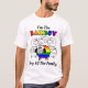 Esta t-shirt do Rainbow Pride apresenta um bando de ovelhas brancas. Em frente ao bando há uma ovelha singular com as cores da bandeira LGBTQ. O texto da camisa diz: "Sou a ovelha RAINBOW da família."