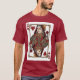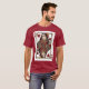 Esta camiseta elegante apresenta um intrincado design de carta de baralho da Rainha de Copas, misturando heráldica real com uma estética ilustrativa moderna. A paleta ousada de vermelho-crimson e dourado destaca uma rainha desafiante segurando uma rosa, inserida dentro de uma ornamentada moldura vintage em filigrana. Esta camiseta gráfica de alta qualidade oferece uma estética sofisticada para fãs da iconografia clássica de baralho e romance gótico. Perfeita para o uso casual, o detalhe artístico proporciona um visual profissional e atraente.