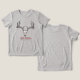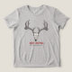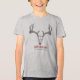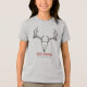 A camiseta do garoto do estilo fazenda apresenta uma ilustração desenhada à mão de uma cabeça de veado/crânio de renas e galhadas com rosas vermelhas a tinta preta. Todo texto é editável. Personalize com seu próprio Cartões de natal e seu nome familiar.