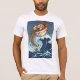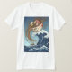 This bold illustration blends traditional Japanese wave aesthetics with modern food pop art. A fierce, animated ramen bowl bursts through a crashing ocean wave, flinging noodles like wild hair while toppings explode outward in dramatic motion. The eggs, meat, and garnishes become expressive elements, giving the ramen a mythical, almost warrior-like personality.
