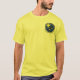 O famoso logotipo da Gimpy Dog Ranch - frente e verso - numa camiseta menos indutora de culpa produzida.