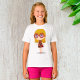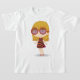 Uma garota com óculos grandes e vestindo um vestido listrado. Esta design parece muito eficaz nesta Camiseta de Meninas