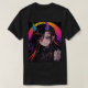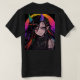 Garota de Anime Gótico Arrependido. Gradiente do arco-íris, cores néon brilhantes e preto. Ela tem uma aparência de estilo gótico, com brincos nos ouvidos eleves e acessórios pretos. Ela tem cabelos pretos e realces. arco-íris, punkrock, glamoure, glam rock, rockstar, kpop, idol, aidoru, cabelo arco-íris, presas, vampiro, vampiro, gritante, colorido, atordoante, psicodélico