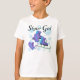 Nossas camisetas design de Rapariga da Patinadora, canecas, bolsas, cartas, travesseiros, relógios de parede, capozes, e outros itens de temas de patinagem apresentam um par de skates azuis e lavandas e mitenes em uma corda cercada por muitos flocos de neve e texto que lê Skater Girl!