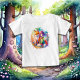 Bonito aquarela, arte ai na camisa da menina. Uma raposa com uma anime garota rosa, verde, azul e laranja.