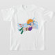 Um garoto com nadadores e óculos nadando com peixes. Esta design parece realmente eficaz nesta camiseta