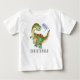 Este bonitinho dinossauro apresenta um dinossauro verde e laranja no estilo brontossauro com texto de cartoonia que diz "ROAR". Personalize este produto com o nome do seu filho.