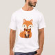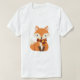 Um desenho animado de uma pequena, brilhante raposa laranja sentada. Está vestindo um cachecol xadrez cor de laranja e castanho aconchegante adornado com uma folha amarela de outono. A imagem evoca um sentido de outono e delicadeza.