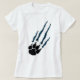 Um design astucioso do t-shirt do impressão da pata de urso com um rasgo ou um rasgo falsificado na camisa.