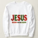 ►IMAGE: O nome de "JESUS" em letras corajosas. ►COLORS: Escuro - o Natal vermelho & verde colore o ►TEXT: "Jesus, a razão para a estação". ►BACKGROUND: Branco. … o design apela a homens & mulheres, todas as idades, crentes no Jesus Cristo e a religião cristã. Tema do Natal/feriado (DESIGN por Paula Bragg)