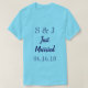 Um design personalizado, esta camiseta Recem casados apresenta um design de monograma das suas iniciais. Abaixo está o "Recem casados" em texto azul escuro. A data do seu casamento está escrita na mesma fonte que as suas iniciais. Faça seu pedido hoje mesmo!