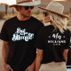 Camiseta Recém-Casados Retro Sr. e Sra. Preto e Azul e Bran