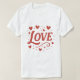 This is a white short sleeve t-shirt with red text featuring Love with cute little hearts surrounding the text.