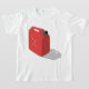 Um jerricano é um design distinto que é muito reconhecível. Este é um jerricano vermelho e está olhando do lado e da frente. O jerricano tem um boné preto e um x vermelho ao lado. Este design vermelho jerricano parece excelente nesta camiseta das meninas. Perfeito para si mesmo ou como presente