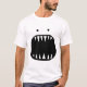 Minimalist red monster illustration with a wide black mouth and sharp white teeth. A bold, flat design character perfect for edgy graphic art projects.