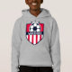 Crie a camisa de casaco de capuz do seu próprio escudo vermelho com o nome da sua equipe de futebol na frente, o nome do jogador de futebol e o número de camisa nas costas. Basta clicar para personalizar o modelo e digitar qualquer coisa que você quiser nas caixas de texto personalizadas. Estas são excelentes para que equipes de futebol usem na prática, ou vistam durante warmups, scripts, campos ou outros eventos do time, especialmente para aqueles com cores vermelhas do time. Para jogadores de futebol de todas as idades, de ligas jovens até segundos graus e universidades!