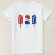 Fogos de artifício Red White e Devido e fogos de artifício 4º de julho chá de fraldas T-Shirt com fogos de artifício e fogos de artifício na frente e picolés ou pop de gelo na parte de trás.