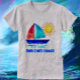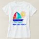 Um veleiro bonito a aquarela veleja o azul-oceano. Uma vela tem cores do pôr do sol e a outra tem uma variedade de belos azuis oceânicos. O casco do navio é um rico azul-safira. As ondas do oceano são aqua. As palavras "Rehoboth Beach" estão abaixo do velejador colorido. Celebre a maravilhosa costa de Delaware com esta camisa divertida de férias lembrança.
