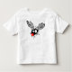Uma ilustração peculiar de uma rena de natal branca e negra, com um nariz vermelho brilhante. Quebrando seu caminho através de papel embrulhado, parecendo louco e desnorteado. Bonita e engraçada.
