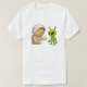 T-shirt personnalisé d'un image mignonne, la rencontre improbable d'un enfant cosmonaute qui rencontre un extraterrestre, un petit homme vert fort sympathique, l'enfant lui tend la main en signe d'amitié.