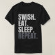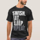 Swish Eat Sleep Repeat: Este item de estilo de vida incorpora a essência da dedicação e do relaxamento. Celebra o ciclo de ação focada seguido de repouso essencial, motivando uma abordagem equilibrada da produtividade e da autoassistência.