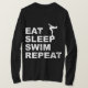 Engraçado Swimmer fala "Coma a Natação do Sono Repetir" e um nadador. O nadador está pronto para pular para uma piscina do texto.