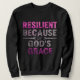 Celebrar força e fé com esta poderosa design "Resiliente por Causa da Graça de Deus". Perfeito para quem supera desafios através da fé, este gráfico ousado mistura tons de roxo e cinzas sobre um fundo robusto — simbolizando resistência, cura e favor divino. Ideal para T-shirts, capuzes, canecas, posters, revistas e muito mais — um presente significativo para crentes, sobreviventes e aqueles que caminham pela graça todos os dias. Fé. Força. Grace. Resiliência.