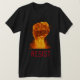 A justiça social temida apresenta grande punho de fogo e chamas com texto personalizável "RESIST" em vermelho e moderno sobre fundo negro.