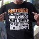 O Engraçado Restorer Diz "Restorer I try Make Things Idiot Proof Mas Eles Mantêm O Fazer Melhor Idiotas". Agarre este design do Funny Restorer como presentes engraçados para uma mãe, pai ou amigo espetacular.