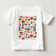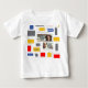 Baby T-Shirt com design em forma de retângulos em que mãe e pai são escritos, bem como fotografias de mãe e pai. Você pode substituir tudo escrito, assim como fotos, por seu próprio.