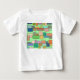 Esta camiseta bebê tem uma design boho moderna de retângulos ligados a linhas horizontais em vários tamanhos e cores boho.