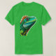 Uma representação vibrante de uma iguana apresenta cores marcantes, incluindo verdes vívidos e vermelhos. Arte digital.