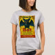 Bring vintage flair and bold color to your wardrobe with this Retro Black Bat Macau Firecracker Tee. Inspired by collectible mid-century fireworks packaging, this design features a bright-eyed bat and intricate dragon flourishes on a golden background. A stylish nod to classic advertising art with a spark of vintage fun.