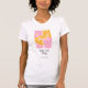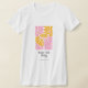 Tee floral cor-de-ouro cor-de-rosa cor-de-rosa, estilo 70, com tipografia florescente retrorada. Uma vibração do estilo 60 e 70. Vibrante e bonito.