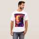 Camiseta retro do cockapoo com um cachorro legal usando fones de ouvido com um reprodutor de cassete vintage e fundo de pôr do sol neon. Inspirado no estilo synthwave dos anos 80, perfeito para amantes de cães e fãs de música.