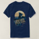 Design impressionante ao estilo retrô de um Doberman Pinscher com um fundo de montanhas e um grande gráfico solar, tudo numa paleta de ouro a cores impressionantes através do azul prussiano. Uma fonte decorativa de grande porte nomeia a raça do cão. Procure ID754 para ver outras opções de cor e raças adicionais de cães neste estilo.