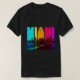 Design de linha do horizonte vibrante e colorida de Miami com uma reviravolta retrorativa, com marcas de terra icônicas e palmeiras contra o fundo do céu estrelado. Ideal para aqueles que amam Miami e querem mostrar seu orgulho na cidade.