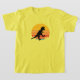 A fearsome T-Rex silhouetted against a vibrant retro sunset, ready to roar.