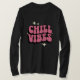 Abrace a estética retrô com esta camiseta "Chill Vibes"! Apresentando um design de tipografia cor-de-rosa-bublegum com efeito de sombra e sotaques espumantes, esta árvore é perfeita para qualquer um que ama moda inspirada na safra. Feita para conforto e estilo, é a escolha ideal para um dia após o dia, um festival de música, ou apenas para ficar por aí. Espalhe energia positiva e boas vibrações com este design único e atraente.