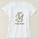 Estas camisas de reagrupamento familiar apresentam um grande monograma de ouro e letra de prata M. Esta elegante família M está centrada nesta camiseta branca e rodeada por um ano e pelo nome da sua família. Personalize todo o texto rápida e facilmente para criar uma camisa de manutenção de reagrupamento familiar tão única quanto a sua família.