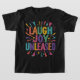 Um grande e ousado slogan de "Ria a Alegria Liberada" em uma fonte divertida e colorida. Um personagem de desenho animado ou super-herói rindo histericamente. Cores e gráficos brilhantes e brincalhões.