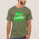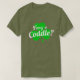 T-shirt engraçada com as palavras Rico um Coddle? numa grande pedra verde. Coddle é o nome de um tradicional guisado irlandês popular que contém enchidos e batatas.