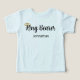 A exibição personalizada de script branco é a função do membro da parte noiva (mostrada: Portador do toque). Você pode personalizar esta camiseta festeira com o nome do portador do anel. Dois anéis de casamento dourados falsos de encravamento aparecem com o texto.